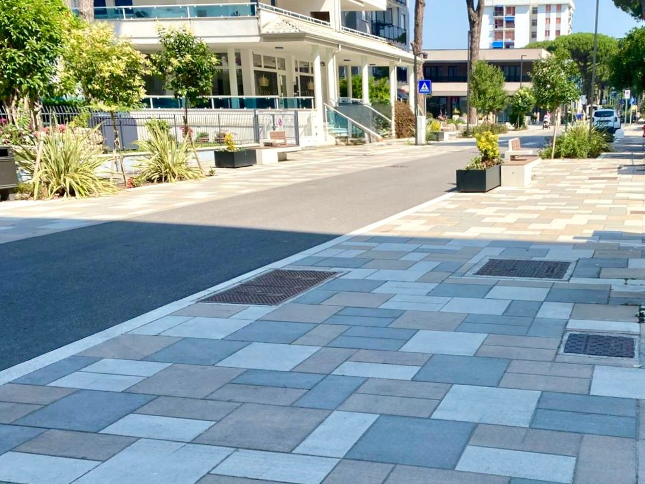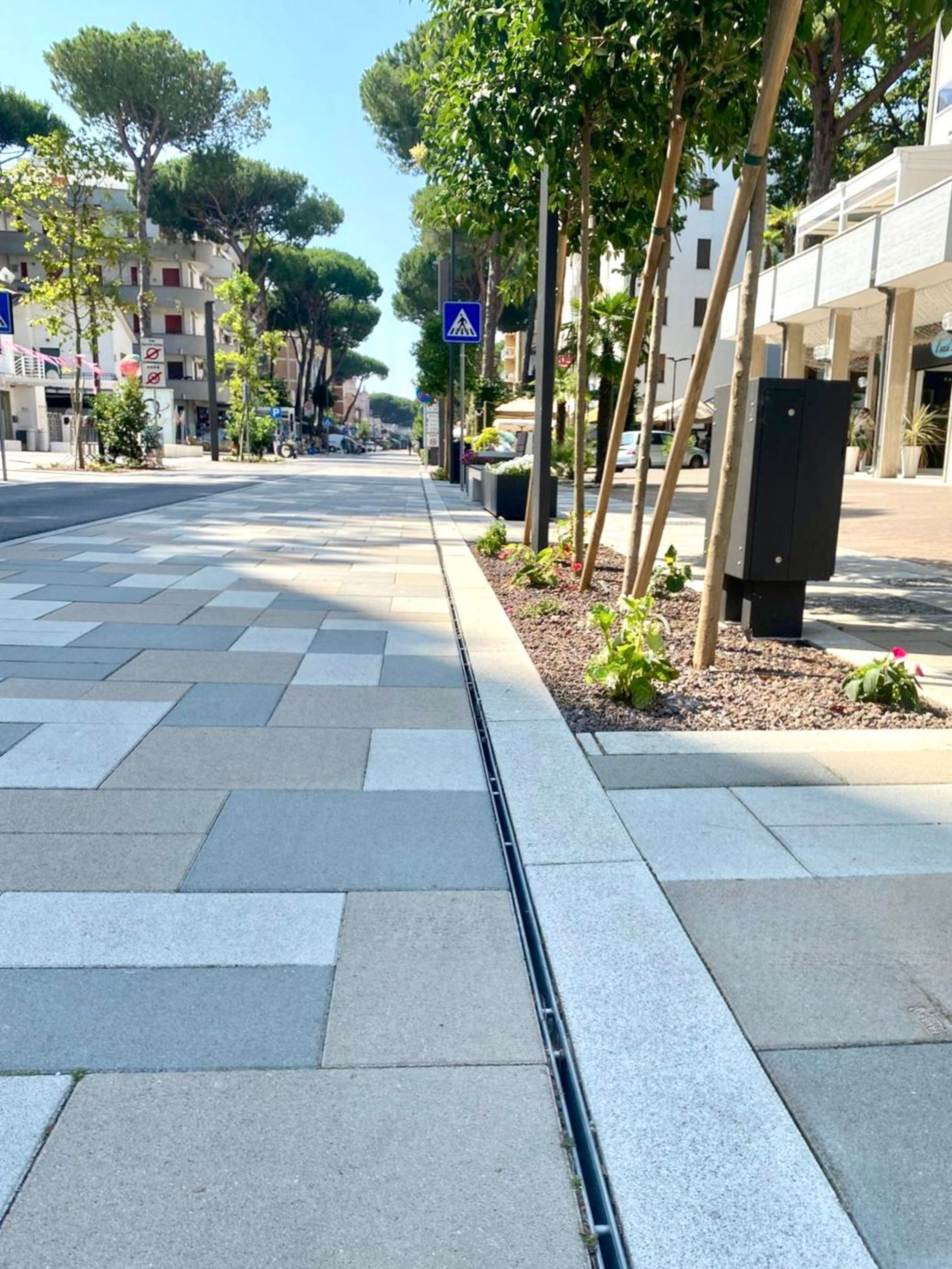 L’intervento comprende anche la riqualificazione delle aree esterne e delle aree di sosta, con la creazione di spazi pavimentati più confortevoli e integrati nelle dinamiche del centro e della stagione turistica. In questo contesto, Favaro1ha fornito la pavimentazione Mega, una soluzione in grande formato che coniuga prestazioni tecniche elevate, resistenza al traffico pedonale e carrabile leggero, e un linguaggio estetico moderno adatto a spazi pubblici di grande visibilità .